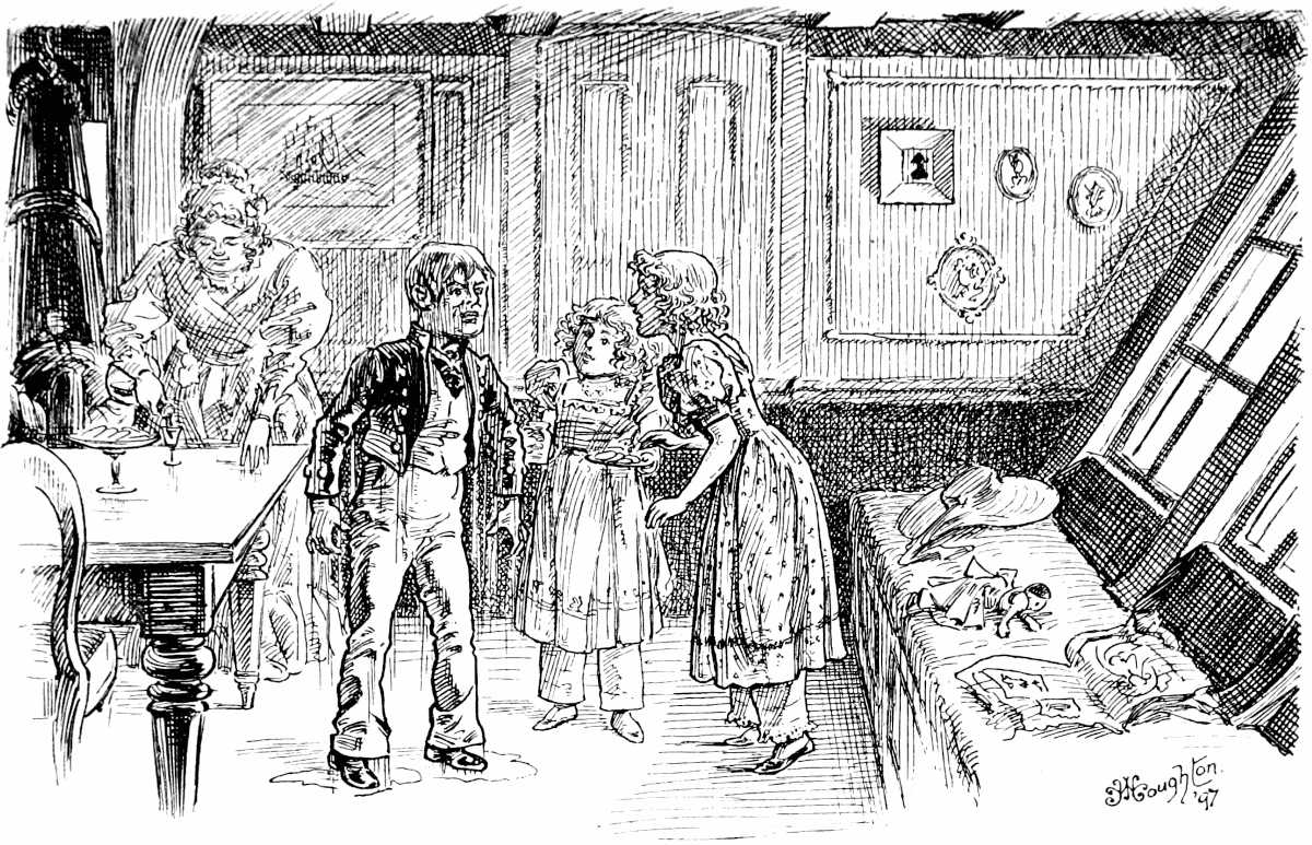 Sailing orders made out and pilot ordered. Tiffined with Lancelot Dent of China. To dinner with Platt’s pretty daughters. Don’t think much of his picture of “The Signing of the Treaty at Nanking.”