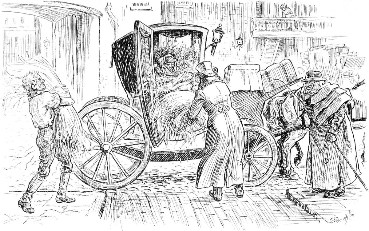 The road inside the compound was flat and winding, lit on either side by cocoanut-oil lamps, mounted on poles just level with my eyes, which prevented my seeing obstacles in the way. The syce was seated on the step as usual. All at once I found myself on my head, with the buggy on top of me. Horse and shafts had disappeared. Being not far from the house, I joined the Admiral as he left his carriage. I was supposed to be part of his staff.