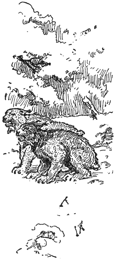 Dat was al wat ’k met zekerheid kon zeggen. Maar hier en daar, in een stukgetrokken maas of een haarvlok of de krab van een klauw tegen een [58]zwiepend takje, waren de bewijzen van een strijd, waarvan men de woestheid, de hevigheid slechts kon gissen. [59]