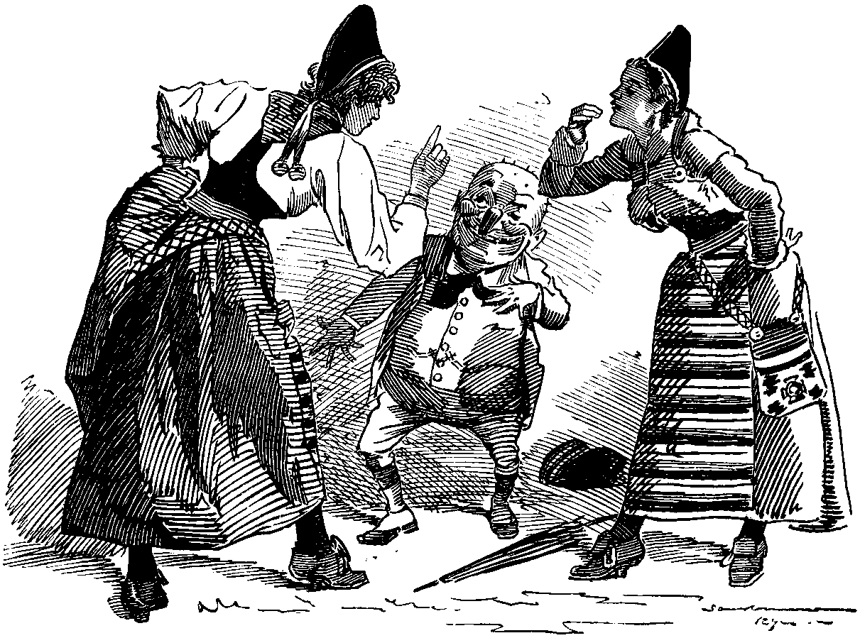 It was then that I found a regulation in force that made my cheeks tingle with indignation as an Englishman. Although the tickets costing three francs a piece, were said to secure admittance to the Kursaal and the Casino, I noticed that children—good and amiable children—were not allowed to enter the latter place. I could understand the feelings of a gentleman who attempted to obtain access for his eldest lad—a gallant boy of some fourteen summers, and a baker's dozen of winters. My heart went out to that British Father as he disputed with the Commissaires at the doorway, and called the attention of the Representative of "the Control" to the fact that his billet was misleading. "You are an Englishman," said the Representative of the Control, "and the English observe the law." "Yes," returned the angry Father; "but in England the Law would support one in obtaining that for which one had paid. My son has paid for admission to the Kursaal and the Casino! He is refused admittance to the Casino, therefore this ticket of his spreads false intelligence! It is a liar! It is a miserable! It should be called the traitor ticket!" But all was useless. The gallant lad had to remain with the umbrellas! I could not help sympathising with that father. I could not refrain from agreeing with him, that where such a thing was possible, something must be entirely wrong. I could not deny that under the circumstances Ostend was a sham, a delusion, and a snare! When he observed that Ostend was grotesquely expensive, I admitted that he was right. When he said that it was not a patch upon Boulogne or Dieppe, I again acquiesced. When he asserted that every English tourist would be wise to avoid the place, I acknowledged that there was the genuine ring of truth in his declaration. When he appealed to me, as a dispassionate observer, to say whether I did not consider the conduct of the authorities arbitrary, unjust, and absurd, I was forced to admit that I did consider that conduct absolutely indefensible. Lastly, when he announced that he intended never to say another word in praise of Ostend, I confessed that I had come in my own mind to the same determination.