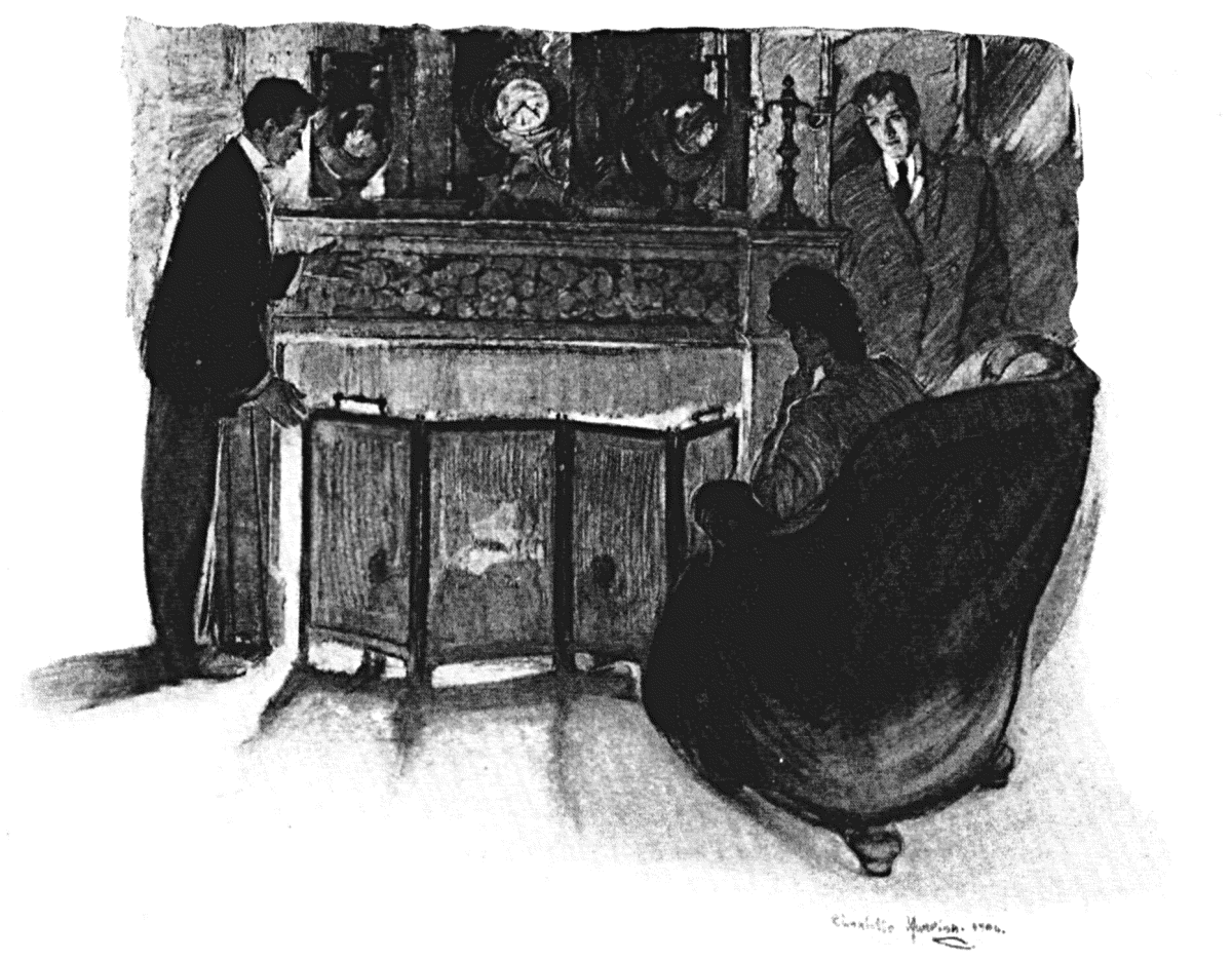 They sat for some time without moving, the burglar engaged in bandaging the cut on his right hand with obvious indifference to Holland’s presence, Geoffrey meanwhile studying him carefully. The process of bandaging over, the man reached out his hand toward the bookcase and, selecting a volume of Sterne, settled back comfortably in his chair. Holland stared at him an instant in wonder, and then attempted to follow his example. But his attention to his book was much less concentrated than that of his captive, whose expression soon showed him to be completely absorbed.