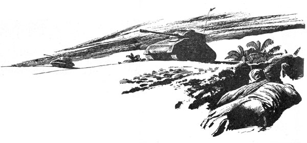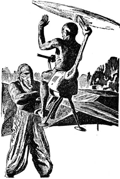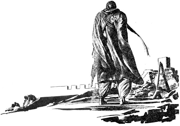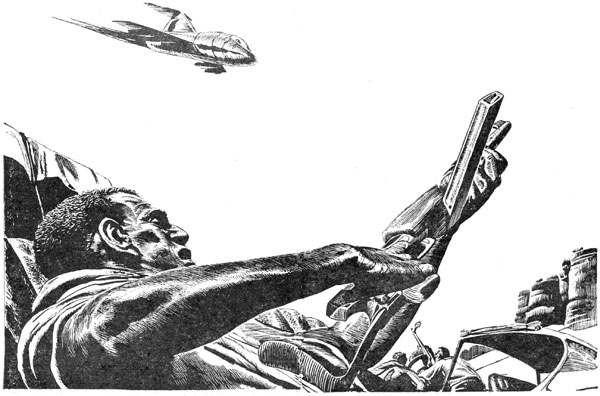 Homer Crawford opened his mouth to protest, then closed it. He reached inside the solar-powered lorry and fetched forth a Tommy-Noiseless and started for the rock outcropping at a trot. Having made his decision, he wasn't going to cramp Bey-ag-Akhamouk's style with needless palaver.