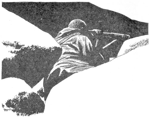 The flac rifle began jumping and tracers reached out from it—inaccurately. The Tommy-Noiseless automatics in the hands of Bey and Elmer Allen gave their silenced flic flic flic sounds, equally ineffective.