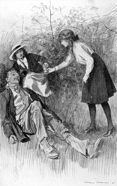 "Peccavi! I didn't see he was there," apologized Gwethyn, rescuing the canvas in question, and placing it in a position of greater safety on the mantelpiece. "Considering you've got absolutely every single chair littered with books, paints, and turpentine bottles, there really doesn't seem a spot left to sit upon," she continued in an injured tone.