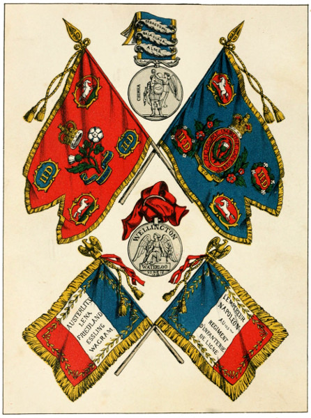 Purposing to sever the British from the Prussians, and beat each in detail ere the Austrian and Russian armies could arrive from Germany to resume the war, Napoleon, by one of those rapid marches for which he was so famous, suddenly falling 392upon and defeating the Prussians at Ligny, turned with the full weight of his power against the British, who were already engaged in a desperate struggle with the corps of Marshal Ney at Quatre Bras—fitly introducing the grander event of Waterloo. Although impetuously assailed by an immensely superior force, and suffering a loss of more than 300 men, the Seventy-ninth behaved with the utmost heroism.