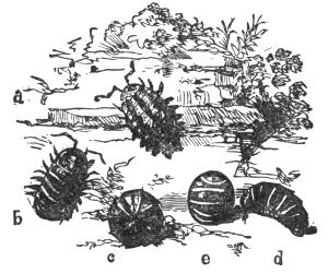 On plate D, fig. 1, is drawn a very lovely insect, one of the numerous blue butterflies that may be seen flitting about the flowers in a garden, themselves of so flower-like an azure, that they may often be mistaken for a blue blossom. The caterpillar, fig. 1 b, is, as may be seen, rather curious in shape, and the pupa, fig. 1 c, is hardly less so.