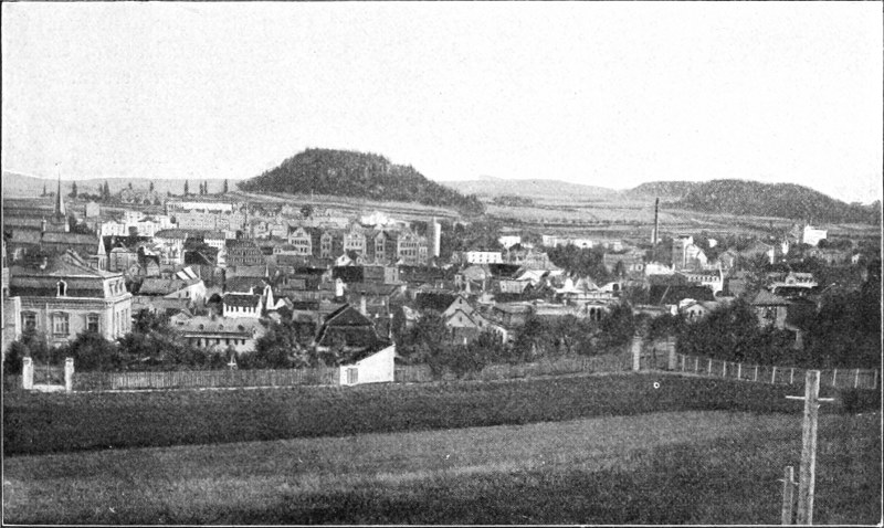Die Sprotte entspringt in den Teichen der reußischen Wüstung Werteln und mündet bei Saara in die Pleiße. Die Pleiße selbst berührt nur auf einer kurzen Strecke ihres Laufes altenburgisches Gebiet, da sie erst oberhalb Gößnitz eintritt, bei Regis, der kleinsten Stadt (1050 Einw.) des Königreichs[S. 41] Sachsen, dies Gebiet wieder verläßt. Einige Kilometer westlich der Pleiße, inmitten eines fruchtbaren Ackergebiets, erhebt sich die Hauptstadt Altenburg (33400 Einw.), beherrscht von dem auf hohem Porphyrfelsen ragenden Residenzschlosse, dessen älteste Teile aus dem XI. Jahrhundert stammten, das aber nach zahlreichen Bränden teils 1706 bis 1744, teils von 1865–1868 neu erbaut wurde. Das Schloß (Abb. 34) war der Schauplatz des in der Einleitung erwähnten Prinzenraubes. In der Nacht vom 7. zum 8. Juni 1455 raubte Kunz von Kaufungen die sächsischen Prinzen Ernst und Albrecht, die Söhne des Kurfürsten Friedrich des Sanftmütigen, um beim Kurfürsten seine Forderungen durchzusetzen. Kunz hatte zwei Mitschuldige, und der Verabredung gemäß sollten sich die Verschworenen trennen, um auf verschiedenen Wegen nach dem Kunzschen Schlosse Eisenberg zu gelangen. Nur eine Stunde von der Landesgrenze entfernt, wurde dem jüngeren Prinzen Albrecht während einer Rast im Walde Hilfe von einem Köhler, dessen Genossen durch den Klang der Hillebille herbeigerufen wurden. Der Prinz wurde befreit, Kunz gefangen genommen, und auf die Kunde hiervon gaben auch die anderen den gefangenen Prinzen Ernst frei. Die Abb. 35 und 36 zeigen deutlich die Veränderung und Vergrößerung der Stadt in 250 Jahren, die nicht nur Sitz der Landesbehörde ist, sondern sich auch einer bedeutenden Industrie erfreut. In der Nähe gibt es zahlreiche Steinbrüche und Braunkohlengruben. Der Handel ist bedeutend in Getreide, da der Altenburgische Ostkreis die Kornkammer Ostthüringens bildet und drei Viertel seines Flächenraumes angebaut ist, davon entfallen 66 vom Hundert auf Äcker und Gärten, 9 v. H. auf Wiesen. Die Stadt wurde urkundlich zuerst 980 erwähnt, wurde wahrscheinlich Mitte des XII. Jahrhunderts Reichsstadt, 1430 durch die Hussiten niedergebrannt, kam 1445 bei der Erbteilung an die Kurfürsten von Sachsen und wurde 1603 Residenz der älteren altenburgischen Linie des Ernestinischen Hauses, von 1826 an Sitz der neuen altenburgischen Linie.