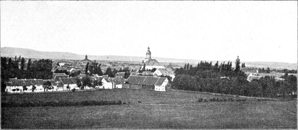 In sanfter Abdachung gegen die Saale endet hier die Querfurter Platte (Thüringische[S. 16] Grenzplatte), deren Muschelkalk meist von Tertiärschichten oder Diluvialgebilden bedeckt ist und außer dem westlichen der Unstrut zugewandten Steilrande nur bei Mücheln und Branderoda zu Tage tritt. Die flach gebuchteten Thäler der Laucha und Geisel sind hier am dichtesten mit Siedelungen besetzt, und in beide Thäler führen jetzt Eisenbahnen. Dort sind Lauchstädt (2100 Einw.) und Schafstädt (2800 Einw.), hier Mücheln (1600 Einw.) die einzigen Städte. Lauchstädt hat eine seit 1710 gefaßte erdig-salinische Eisenquelle (11° C.) und war früher Sommerresidenz der Herzöge von Sachsen-Merseburg. Während seiner höchsten Blütezeit war es oft Sommeraufenthalt von Karl August von Weimar und Goethe, die auch den Vorstellungen der weimarischen Schauspielergesellschaft auf der kleinen Bühne (Abb. 9) beiwohnten. Hier ging zuerst in Anwesenheit Schillers am 19. März 1803 die »Braut von Messina« über die Bretter, deren Proben Goethe geleitet hatte. Südlich des Geiselthales erhebt sich der 159 m hohe Janushügel bei dem Dorfe Roßbach, wo 1757 Friedrich der Große die Franzosen schlug.
