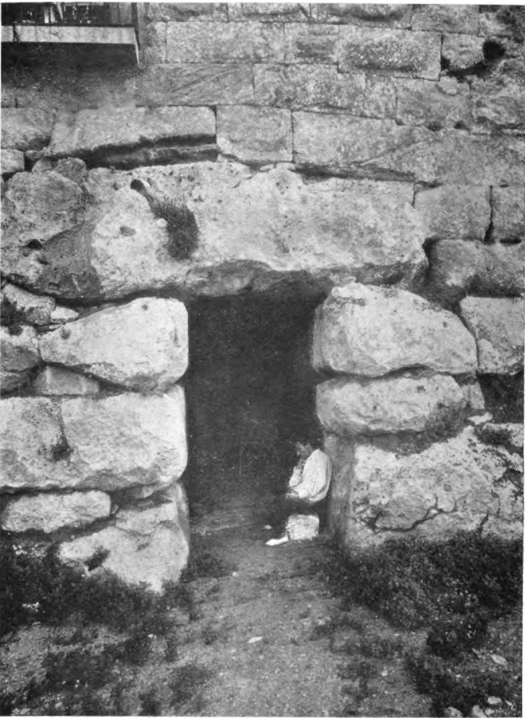 The boat-shaped piles, called navetas or naves, on the other hand had clearly a sepulchral character. The front or prow is slightly concave. The entrance measures about half a metre across and three-quarters of a metre in height, the edges are grooved as though to admit some sort of door. Inside, the passage widens and conducts you to a second opening as narrow as the first, through which you penetrate into the mortuary chamber itself. Filled now with rubbish, filth and carrion, these are the tombs of the fathers of the Mediterranean races, whose bones are brought to light each time the Menorcan ploughs his stubborn soil.