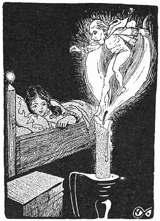 Toen werd het meisje naar bed gebracht en het duurde lang, voor zij den slaap vatten kon. Zij luisterde naar het rustige ademhalen van Truus, zij keek in de kamer, waarin zij flauw de omtrekken van de meubelen onderscheidde. Weer ving de knop van de kachel den lichtstraal op, die door een kiertje naar binnen viel. Doch geen enkel wonder gebeurde er. Het kaarsemannetje kwam niet.
