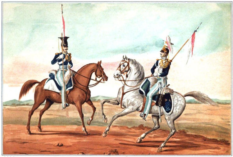 A century passes, and we find Great Britain again torn by internal strife in the shape of the Scotch rebellion. Glancing at the list of the British cavalry regiments at this period we find them still divided into horse and dragoons; but the dragoons are in decided preponderance, and both branches unmistakably “heavy.” A patriotic Englishman, the Duke of Kingston, observing this latter failing, raised a regiment of Light Horse (the first ever seen in England) at his own expense, in imitation of the Hussars of foreign countries. Thus the Civil War of 1745 called into existence the only arm of the military service which had been left uncreate by the great rebellion of 1642–48. Before leaving this Scotch rebellion of 1745, let us remark that there took part in the suppression thereof a young ensign of the 47th Foot, named John Hale—a mere boy of seventeen, it is true, but a promising officer, of whom we shall hear more.