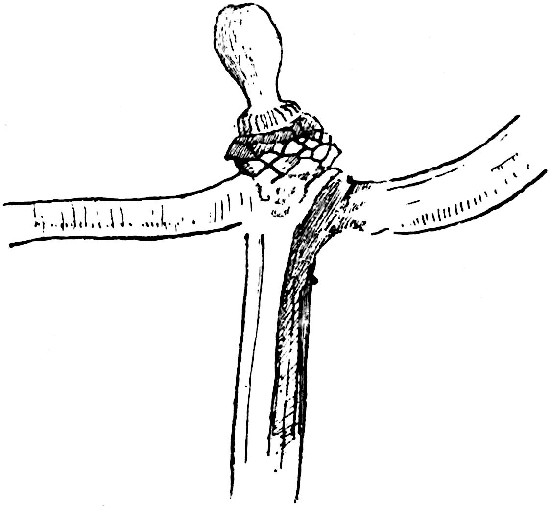 The employment of this generic name may serve a useful purpose if used for specimens, whether preserved as petrifactions or impressions, believed to be portions of Cycadean frond-axes, but which in the absence of pinnae cannot be assigned to one of the recognised genera of fronds. Saporta[1770] describes two species from Kimmeridgian beds in France, Cycadorachis abscissa and C. armata: the first may be the winged base of a Cycadean petiole, but it agrees equally well with the broad base of an Osmundaceous 591leaf and should not be referred to a genus implying affinity with a particular class. The other species, C. armata, is probably a piece of a spinous axis like that of the Wealden plant Sewardia latifolia (Sap.). A fragment figured by Fliche and Bleicher[1771] from the Jurassic of Nancy as C. tuberculata is another example of a fossil which cannot be referred with any certainty to the Cycads.