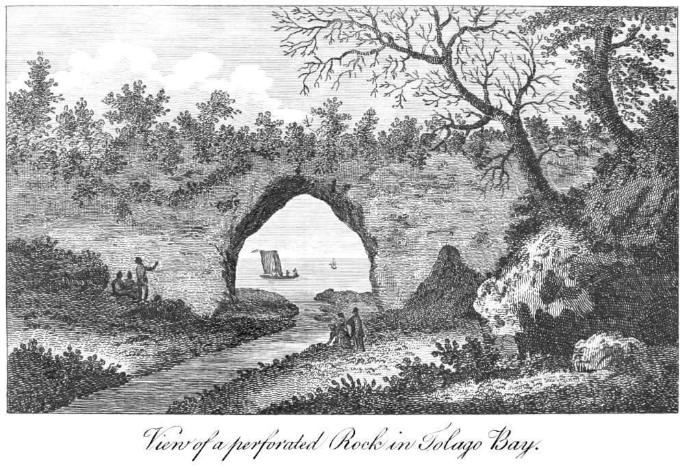 On Tuesday, when near the shore, they saw very large columns of smoke rising from the low-lands. This day they gave name to Cleaveland Bay, the east point of which was called Cape Cleaveland, and the west Magnetical Isle, because the compass did not traverse well when they were near it. The points, as well as the main land within them, lay high, and form a barren, rugged and rocky coast. On the afternoon of Thursday they saw several large columns of smoke, likewise some canoes, and several natives, with some trees, that they thought were those of cocoa-nut; in search of which fruit Messrs. Banks and Solander went 426ashore with Lieutenant Hicks; but they returned in the evening with a few plants, which they had gathered from the cabbage palm, and which had been mistaken for the cocoa-tree. On Friday they gave the name of Point Hillock to a point of land; between which and Magnetical Isle the shore forms Halifax Bay, which affords shelter from all winds. At six this evening they were a-breast of a point of land, which was named Cape Sandwich, near which lies Rockingham Bay. Hence they ranged northward along the shore, towards a cluster of islands, on one of which about forty men, women and children were standing together, and looking at the ship with a curiosity never observed among these people before. The north point of Rockingham bay was called Dunk Isle, which is scarcely to be distinguished from the shore, it lies so very near it. On Saturday morning they were a-breast of some small islands, which were named Frankland’s Isles; near which lie two places, which were called Cape Grafton and Green Island. Here Messrs. Banks and Solander went ashore with the Captain, whose chief view were to procure water, which not being easily to be got, they soon returned on board, and the next day arrived near Trinity Bay, which was so called, because it was discovered on Trinity Sunday.