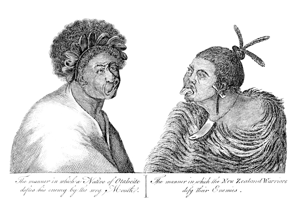 In the morning the second Lieutenant was sent to bring the Master back, soon after which four Indians, in a small canoe, were within sight. The Captain now determined to take no notice of these people, as the most likely way to be noticed by them. This project answered: two of them came within musket-shot of the vessel, where they conversed very loud: in return the people on board shouted, and made signs of invitation. The Indians gradually approached, with their lances held up, not in a menacing manner, but as if they meant to intimate they were capable of defending themselves. They came almost along-side, when the Captain threw them cloth, nails, paper, &c. which did not seem to attract their notice. At length one of the sailors threw them a small fish, which so pleased them, that they hinted their design of bringing their companions, and immediately rowed for the shore. In the interim, Tupia 443and some of the crew landed on the opposite shore. The four Indians now came quite along-side the ship; and having received farther presents, landed where Tupia and the sailors had gone. They had each two lances, and a stick with which they throw them. Advancing towards the English, Tupia persuaded them to lay down their arms, and sit by him, which they readily did. Others of the crew now going a-shore, the Indians seemed jealous, least they should get between them and their arms; but care was taken to convince them that no such thing was intended, and more trifles were presented to them. The crew staid with them till dinner-time, and then made signs of invitation for them to go to the ship and eat; but this they declined, and retired in their canoe.