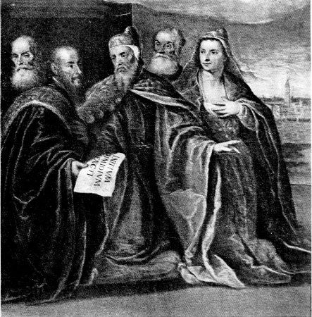 With respect to illustrations it will be at once remarked how few portraits of Dogaressas I offer. The fact is that Venetian painters, great or small, painted fewer than a dozen of the noble First Ladies of Venice. This is perhaps what might have been expected. Venetian painters excelled all others in the delineation of youthful female beauty,—they were the first to paint “Venus Calva,”—but the middle-aged and the aged did not appeal to them. No, the Dogaressas have nothing for which to thank painters, sculptors, or engravers: such artists were directly under the patronage of the Doges not of their Consorts.