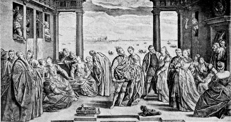 | A Doge and Dogaressa of the Fisher-Folk—Dogaressa Zilia Dandolo-Priuli’s Coronation—“I am delighted with everything!”—Gorgeous Obsequies—The Republic at Peace—Talented Dogaressa Loredana Marcello-Mocenigo—Visit of Henry III. of France—Extravagant dissipation—Bold Courtesans—Veronica Franco—A Venetian Sappho—Battle of Lepanto—A Hero Doge—“The Golden Rose”—An Amiable Dogaressa—Bianca Cappello—“Daughters of Venice”—Caterina Cornaro—Dogaressa Morosina Morosini-Grimani—Lavish Largesse—Laudatory Orations—Stamped gilded Leather—A Magnificent State Robe—A Water-Pageant—Two hundred thousand visitors—A Grand Naval Review—International Sports—Dogaressa’s love of lace | 252–291 |