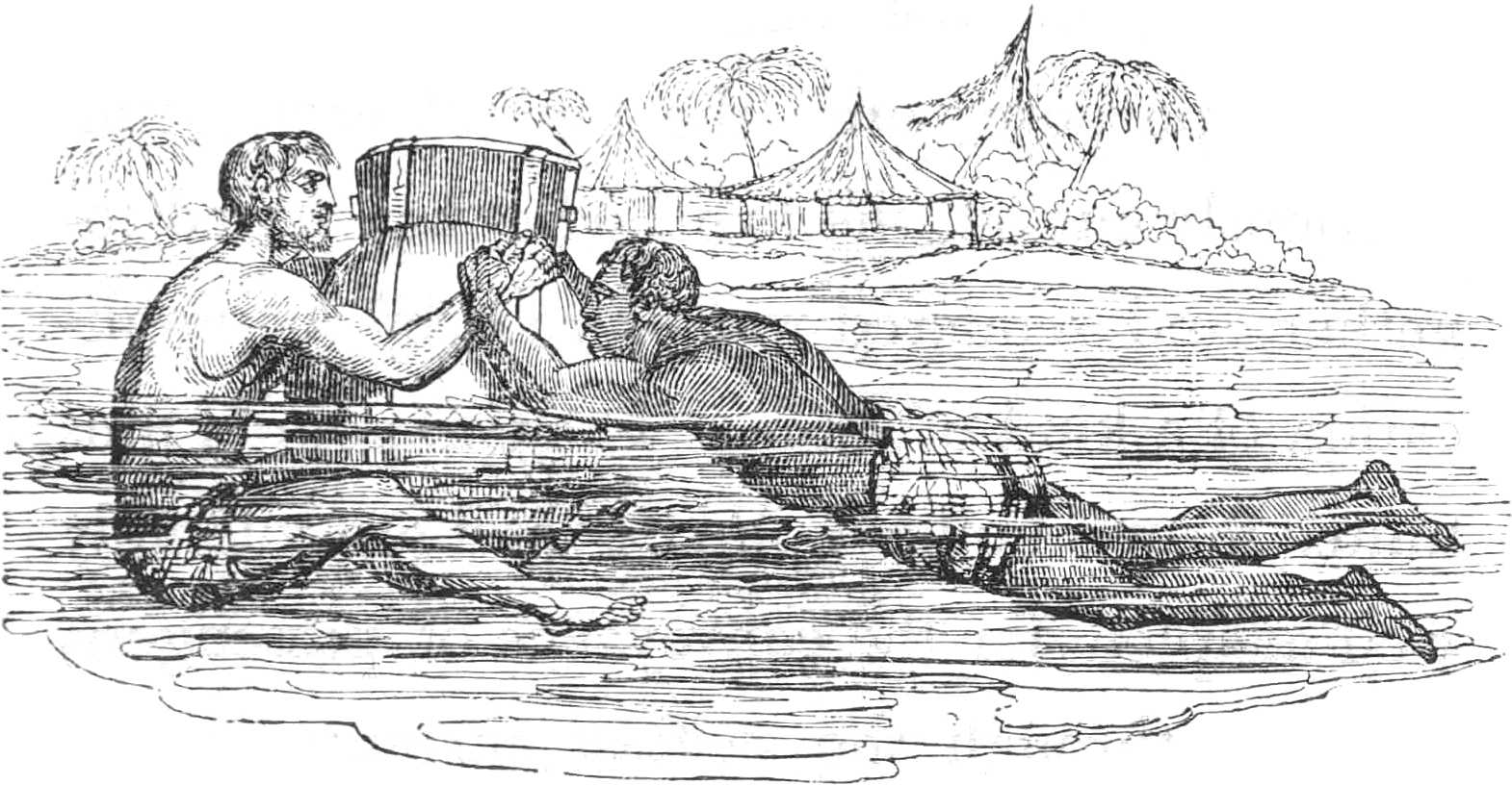 [8]Seamen, when captured by pirates, are sometimes compelled to walk blindfolded from a board into the sea, and so left to perish. This is termed “walking the plank.”